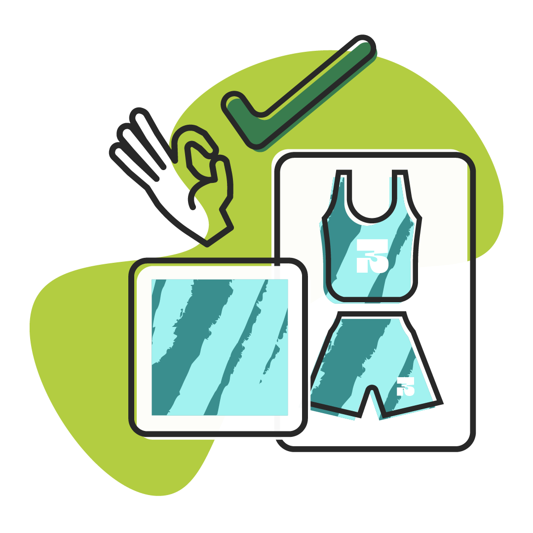 Po pierwszym spotkaniu i otrzymaniu od Was paczki z logami i grafikami, które chcielibyście mieć na stroju potrzebujemy około tygodnia na przygotowanie dla Was kilku wersji projektu do wyboru, który dostarczymy Wam na maila - tutaj dowolny czas do namysłu, oczywiście uwzględniamy kolejne sugestie i poprawki.